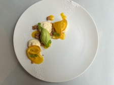 芳醇な酒粕の香りを纏わせたチーズムースに、ほろ苦い甘夏のコンフィチュールを合わせました。 濃厚なピスタチオのアイスクリームと共に、和と洋の発酵が織りなす、 奥深いハーモニーをお楽しみください。