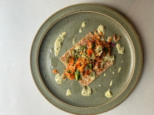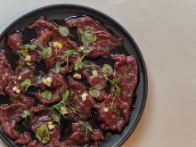 Roasted Wagyu beef thigh with salted lemon condiment and soy koji perigueux sauce